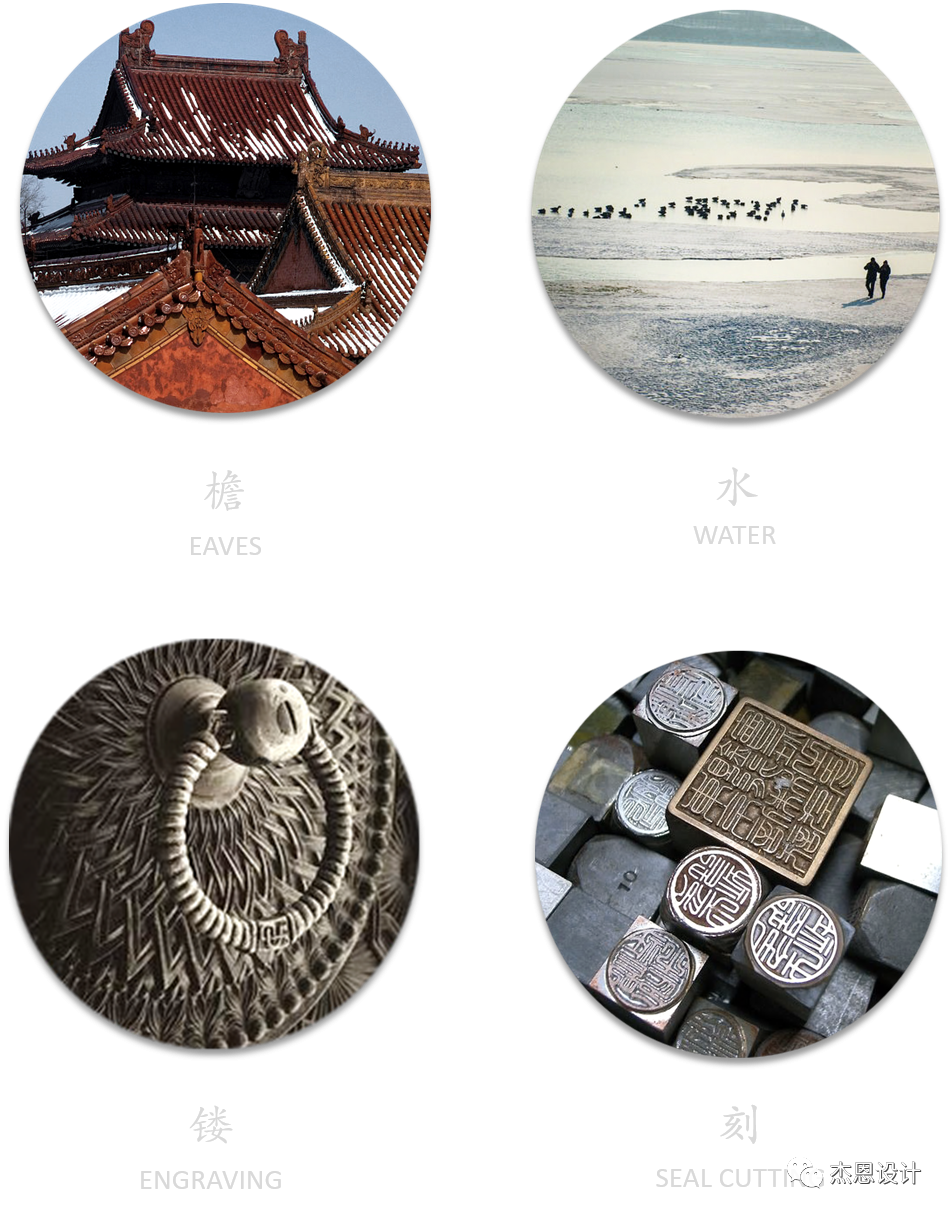 J&A通过创意进入到东方千年文化经典的源头,把设计命题打开,将历史碎化的记忆与年轻化融合,提炼沈阳故宫的“檐”、“水”、“镂”、“刻”的元素,并以新科技、新手法、新材料的先进手段,让空间因厚实底蕴的年轻化再造而焕发出更加鲜活的魅力。