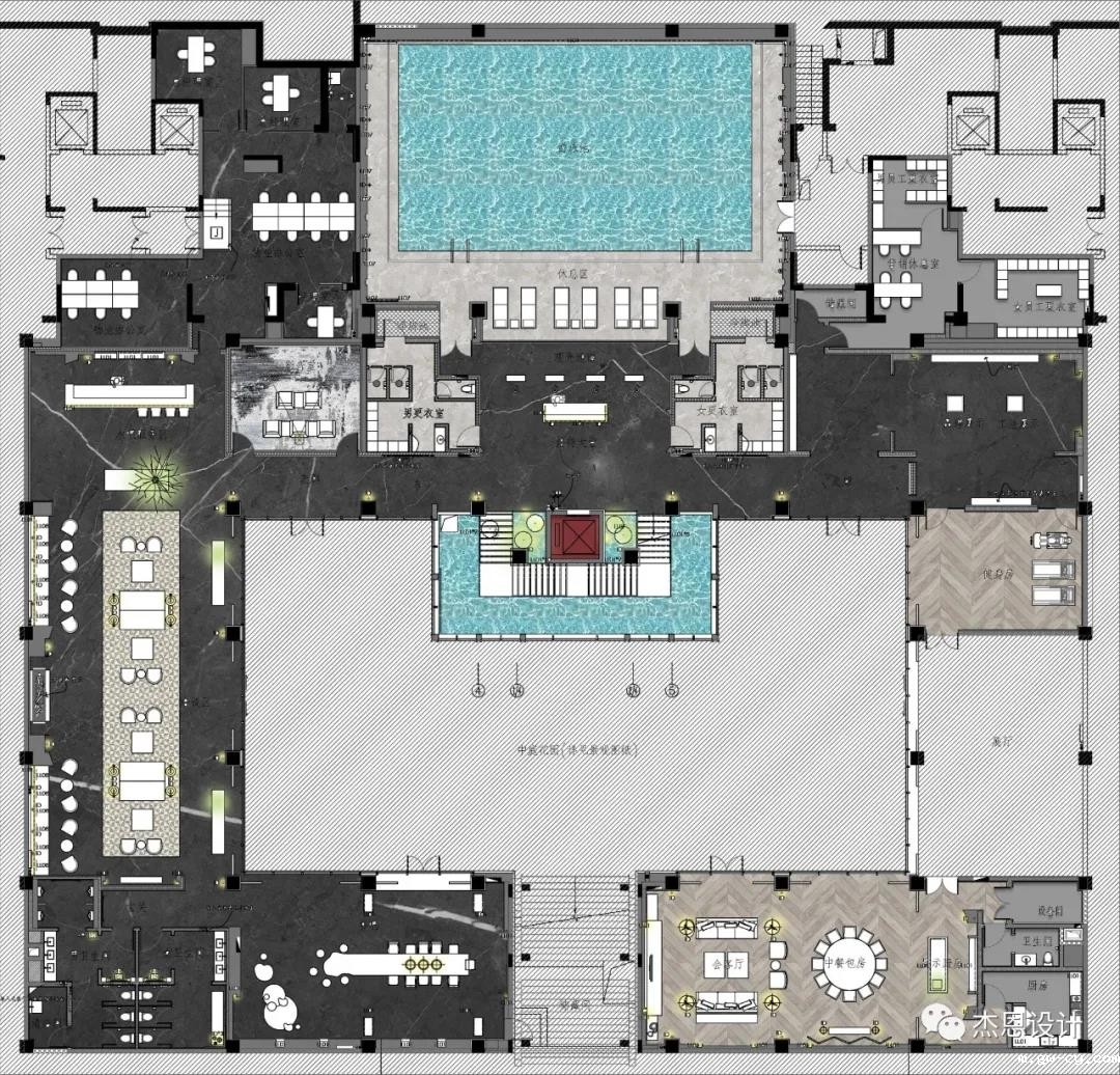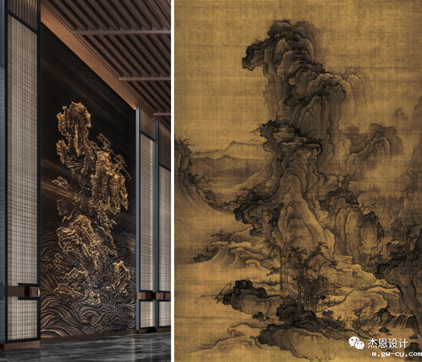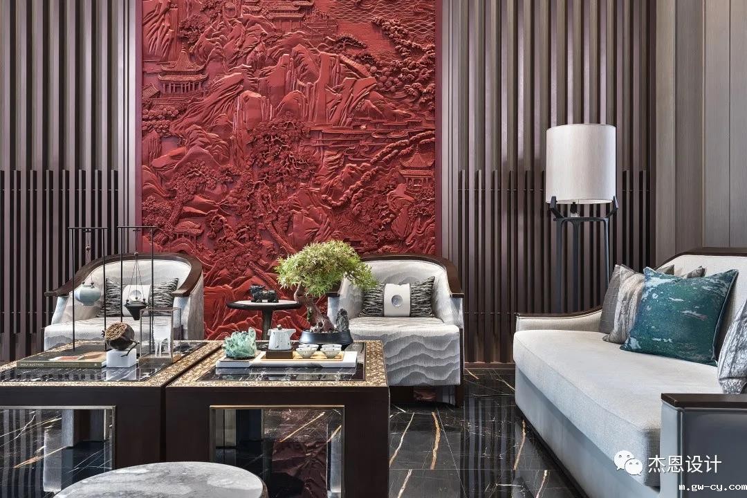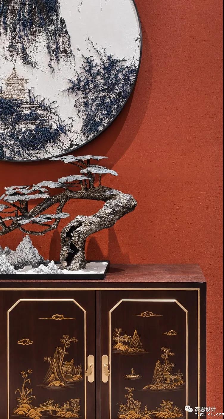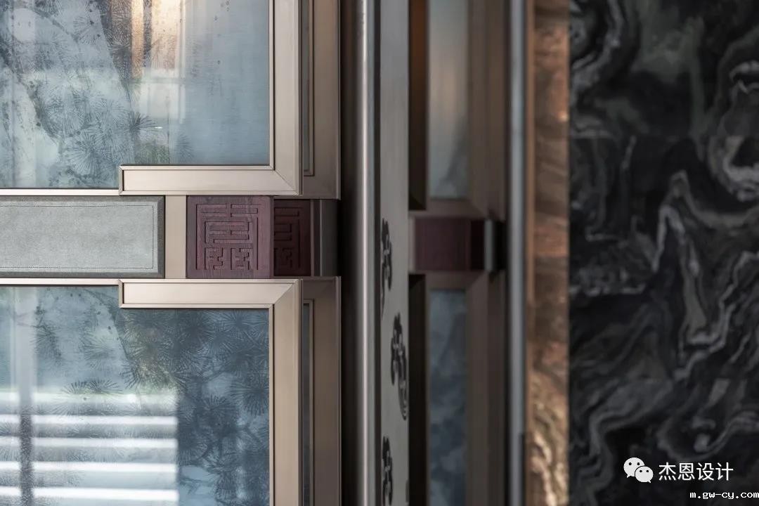 主要材料:古铜金属、木饰面、石材、木纹铝板、艺术玻璃、文化石、实木加胡桃木贴皮,铜制配件等