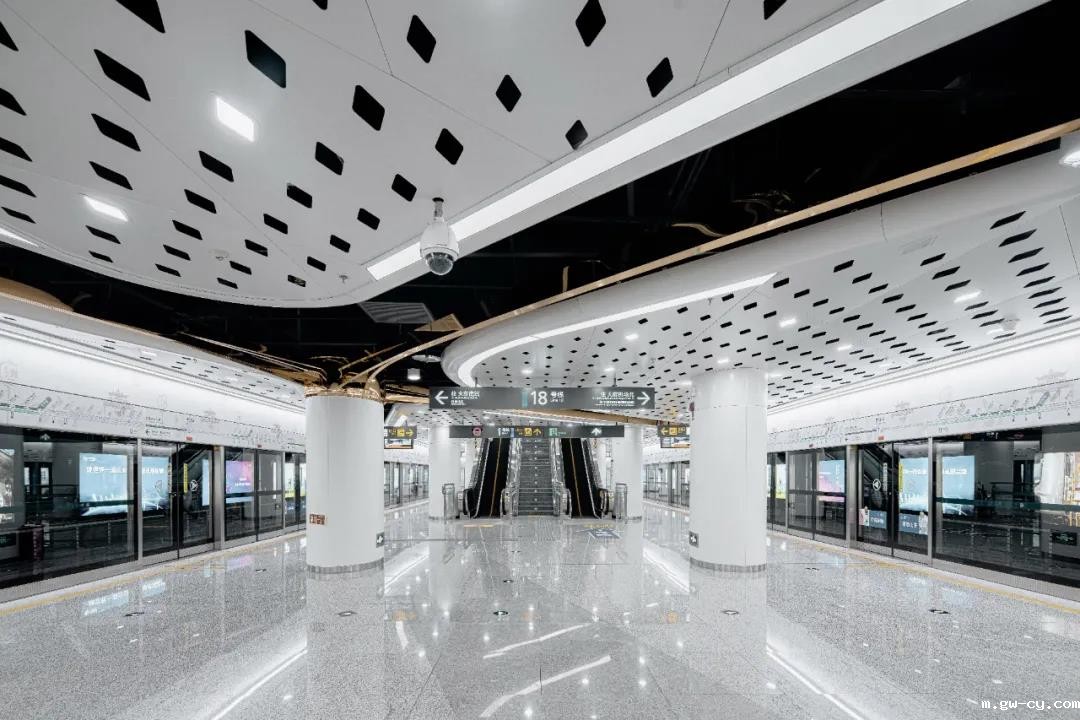 成都地铁18号线作为一条兼顾市域客流和机场客流的复合线,一般艺术站含火车南站、海昌路站、福田站、兴隆站、三岔站5座车站,J&A以“世界窗口,魅力川蜀”为设计主题,采用机舱窗口作为设计元素,并在柱墙面嵌入“川剧”“糖画”“巴山蜀水”“茶马古道”等成都特有的文化符号,向世界展示了成都独特的城市魅力。