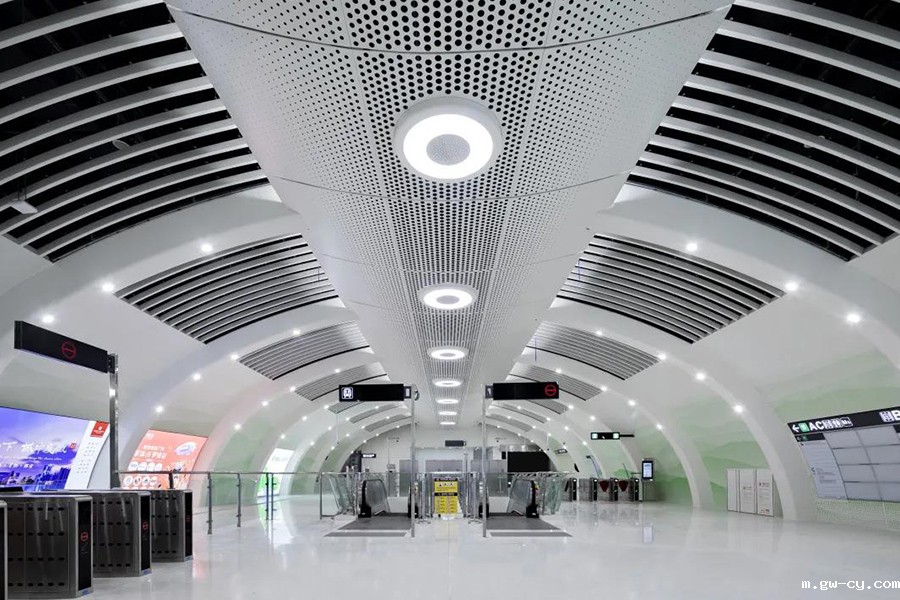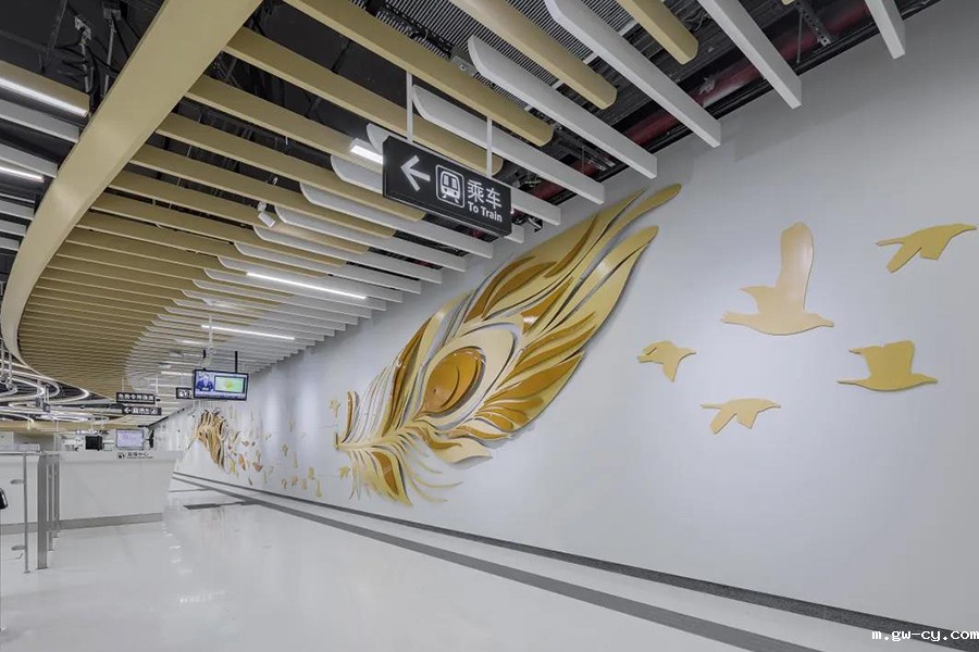 扶梯洞口处通过抽象鱼骨架造型进行装饰,