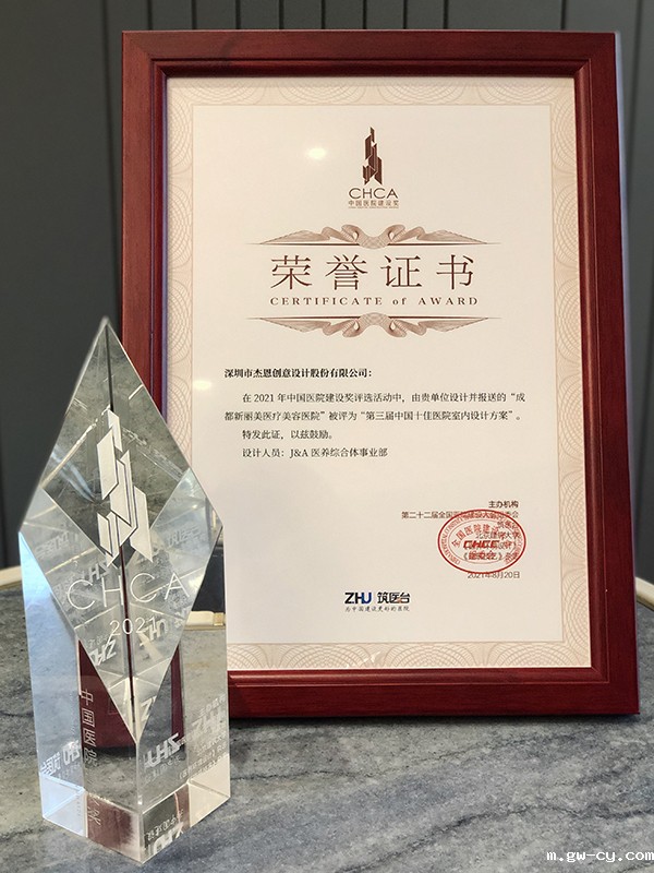 10月13日,“2021年中国医院建设奖颁奖典礼”在深圳国际会展中心举行,J&Abetway开户网站作品「成都新丽美医疗美容医院」从众多设计方案中脱颖而出,荣获“第三届中国十佳医院室内设计方案”。