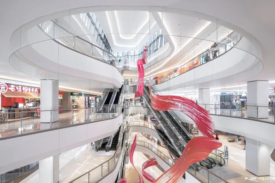 J&A立足华发商都的品牌理念和战略定位,紧密结合中山的地域人文特色,创新性融合艺术元素,力图呈现一个具有鲜明个性和差异化的商业空间。山水画般的展开、留白、停顿、渲染,共同组成整体商业空间的设计手法。透过提炼山体连绵起伏的层次变化,J&A以现代化的设计语言,在简洁的空间内创造出丰富的节奏感,为这座城市打造独一无二的“城心悦活新享地”。