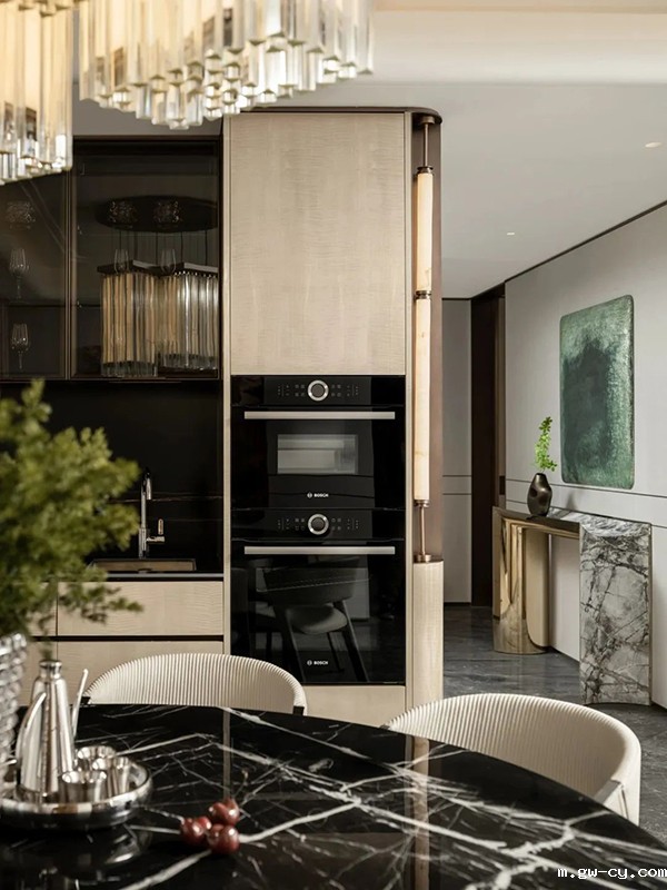 如“懿”似锦的水晶吊灯,搭配对称式的布局设计,无不体现了设计与美感的微妙平衡。开阔性的空间格局,让视觉感官一目了然。