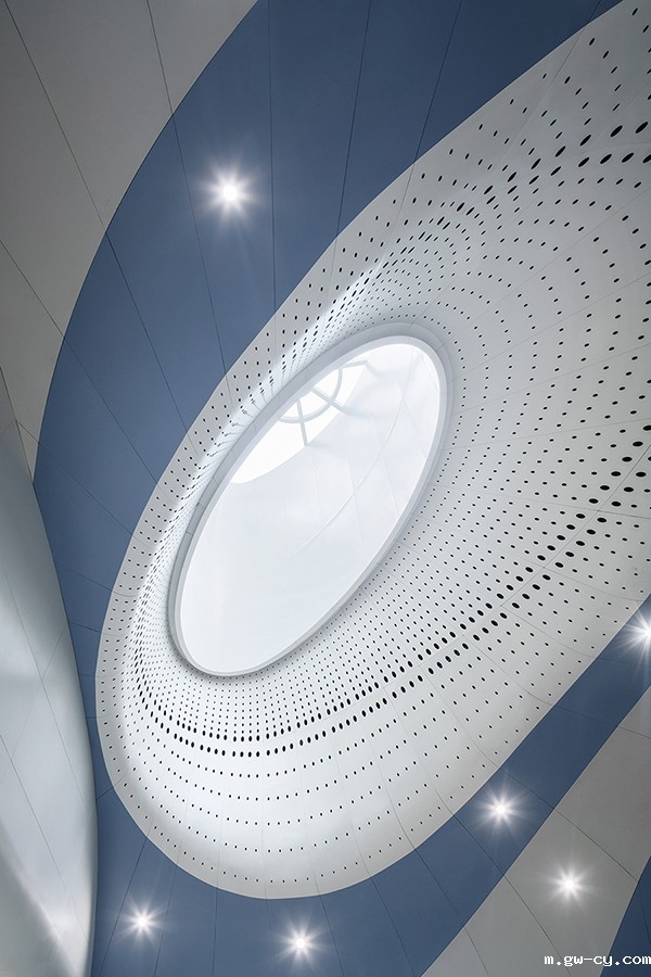 在空间视觉上结合建筑特色,以流线的形式虚实结合释放了天窗区域,提升空间视觉感受与品质。