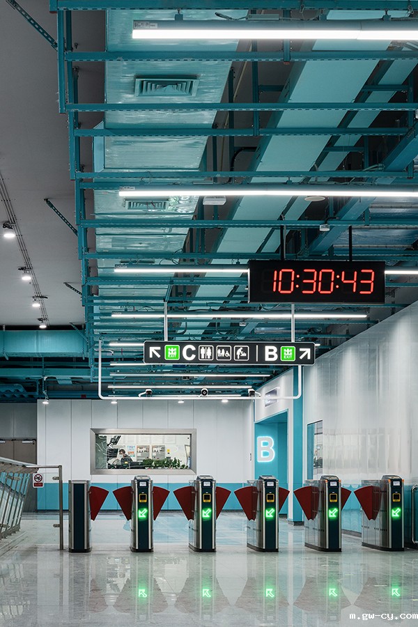 利用管线造型和沉浸式色彩营造出独特的感官体验。不仅强调了盐田区的旅游文化特色,还在延续深圳地铁一贯简约风格的基础上,通过虚实相结合、缤纷色彩的运用,打造出一个悠然自由、惬意舒适的“山海航线”,让人仿佛步入一座充满艺术气息的展览馆。