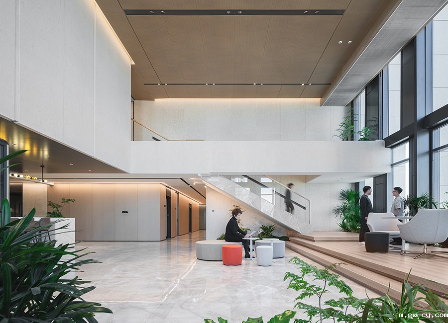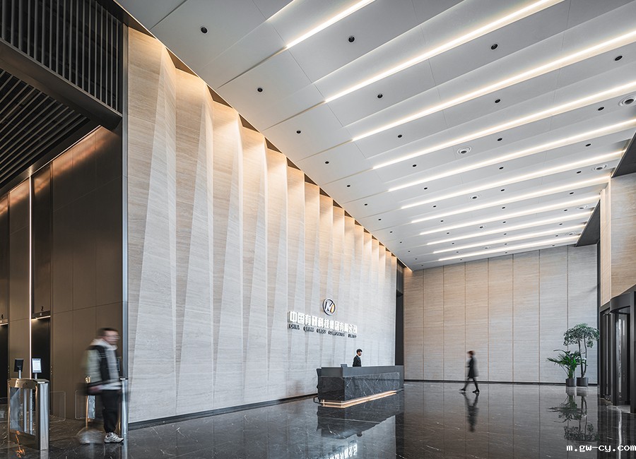 8米挑高的总部专属自用大堂,方寸间彰显企业雄厚实力与前瞻性,塑造出沉稳务实的科技创新型国企形象。