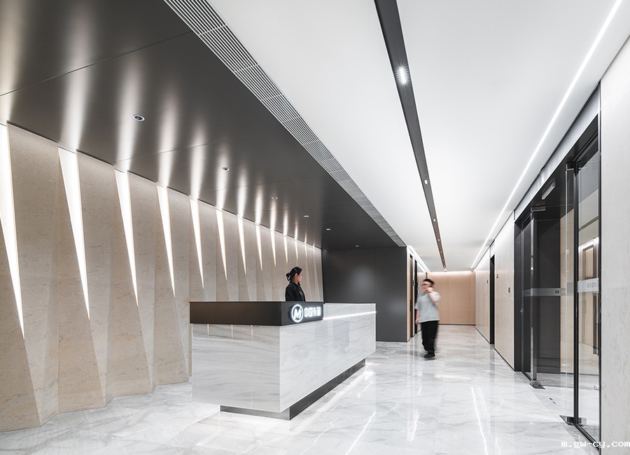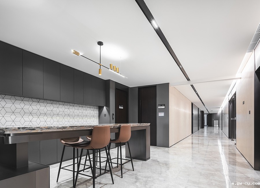 设计用材种类较少,块面与形态的变化组合,注重呈现以简单的选材塑造干净而富有力量的气场。