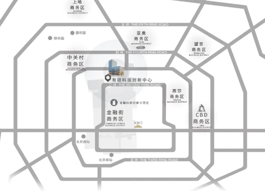 有研科技创新中心位于金科新区,在中关村商圈、金融街商圈及亚奥商圈三大黄金商圈的交汇处,路网资源四通八达,地理位置得天独厚。