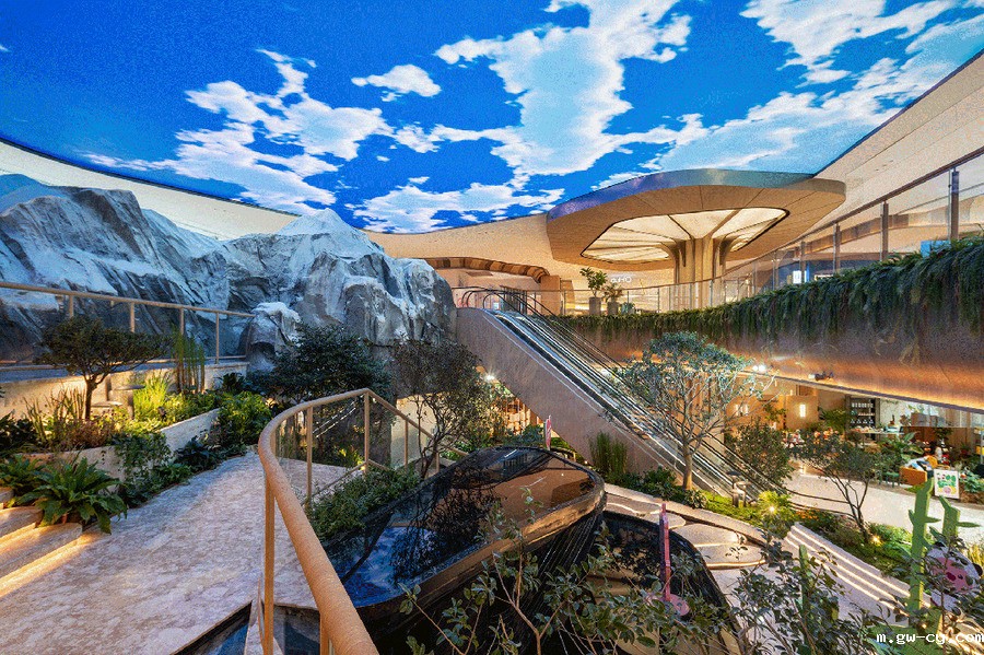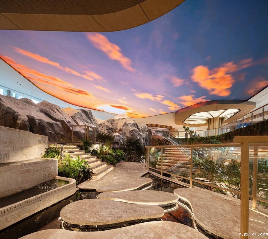 延续“城市自然共同体”的理念,成都光环购物公园充分融入“雪山下的公园城市”在地样貌,在近20000㎡的垂直空间里,呈现出「云里」「山里」「光里」三大特色空间,打造一个疗愈系都市栖息地。