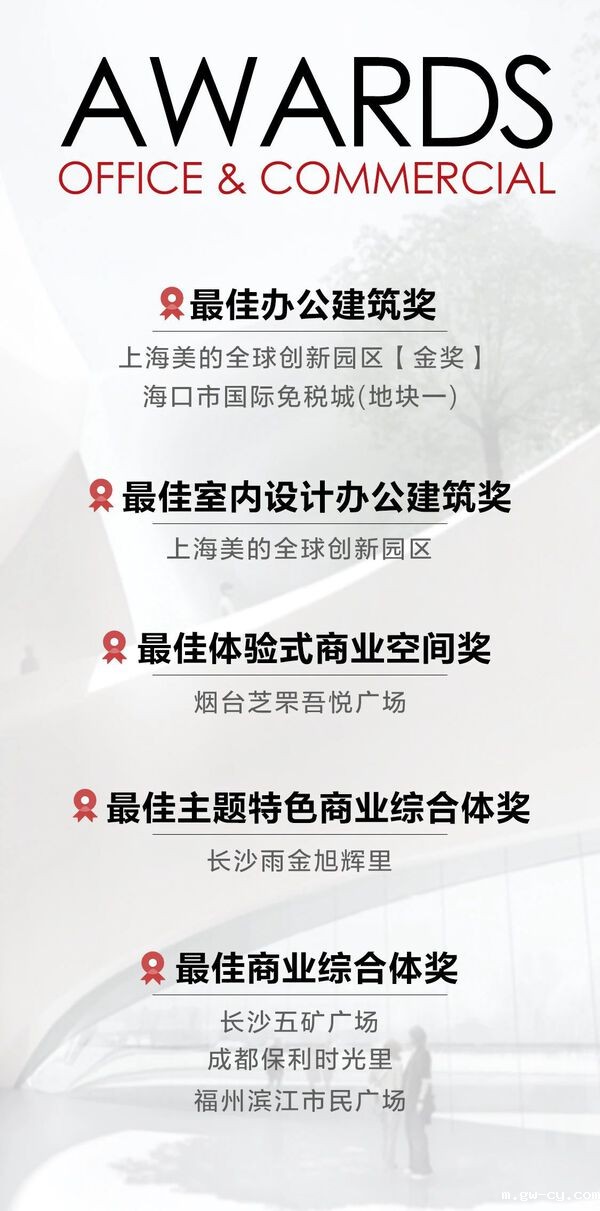 近期更是喜报频传,上海美的全球创新园区、海口市国际免税城(地块一)、烟台芝罘吾悦广场、长沙雨金旭辉里、长沙五矿广场、成都保利时光里、福州滨江市民广场,荣获“GBE商业与办公建筑大奖2024”。