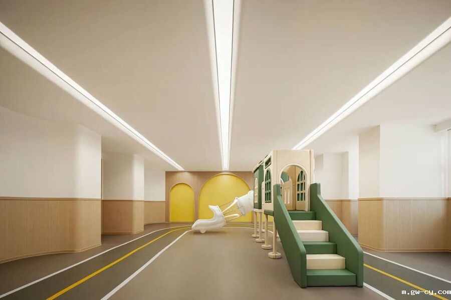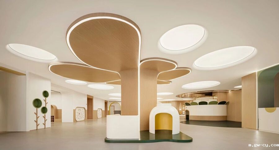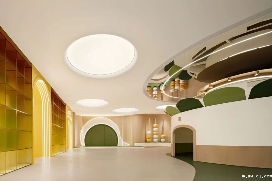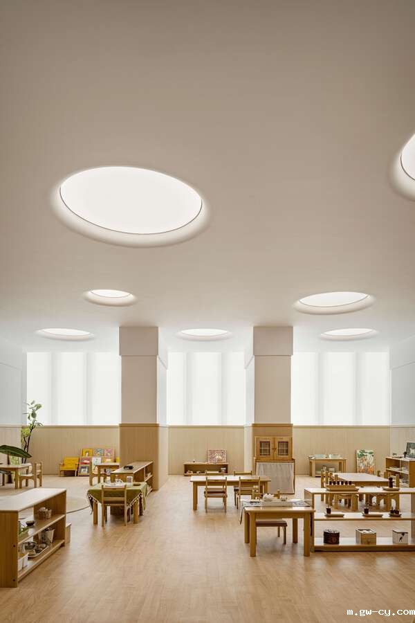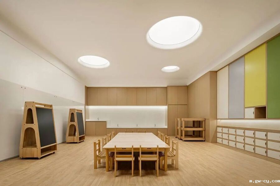 J&A在立面提升及室内设计中引入“天圆地方”的设计理念,通过灵活的空间布局,搭配中国传统色彩元素与贴心设施,为孩子们提供了一个温馨、安全且富有启发性的成长空间。
