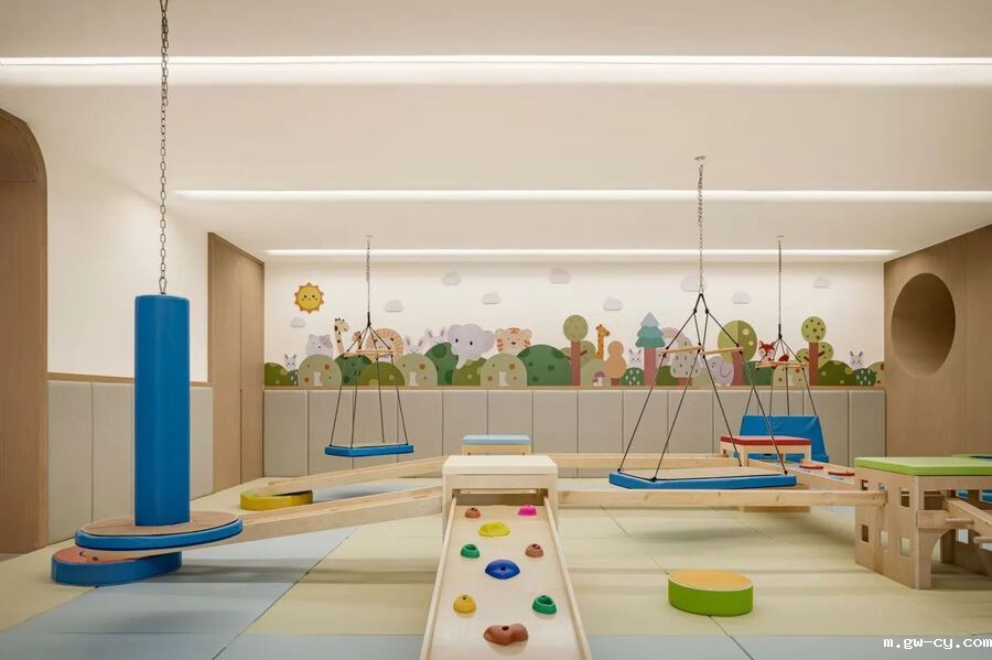 感统教室的四周被软垫所包围,为孩子们提供了全方位的安全保护。双侧开门设计方便家长随时观察教学活动的进展,也避免了对教学的干扰。