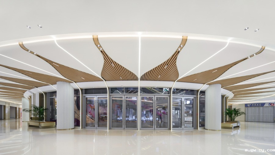 入口处运用“高山流水”的形态,将水的灵动理念引入室内。