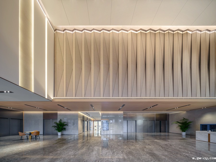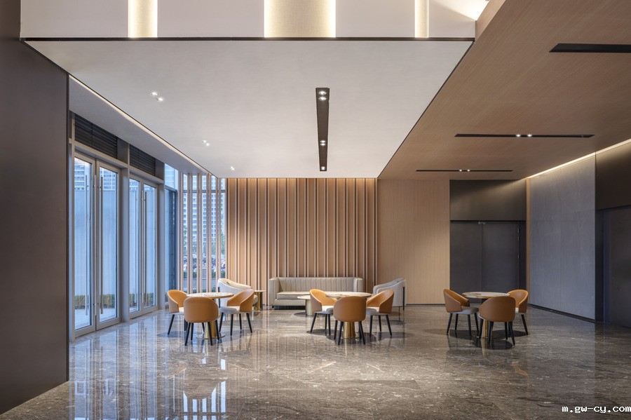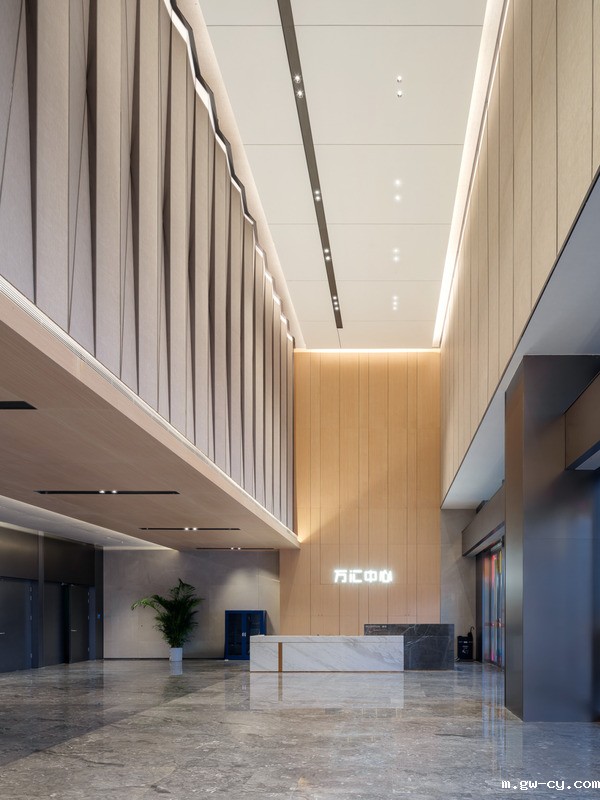 万汇中心延续整体调性,在办公大堂营造高效、专业且不失质感的商务氛围,满足企业形象与员工体验的双重需求。