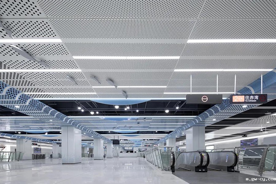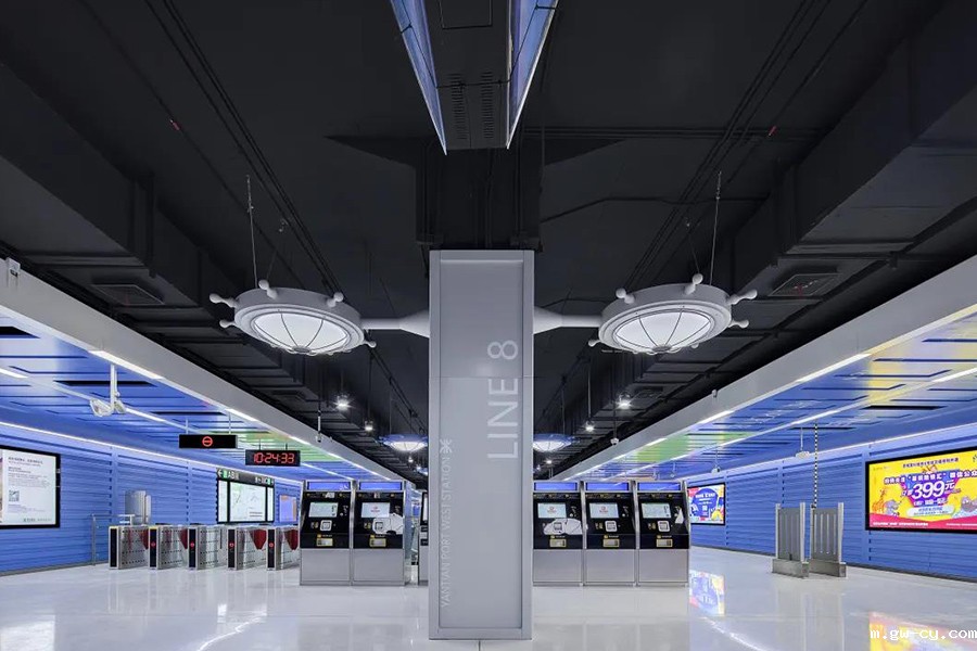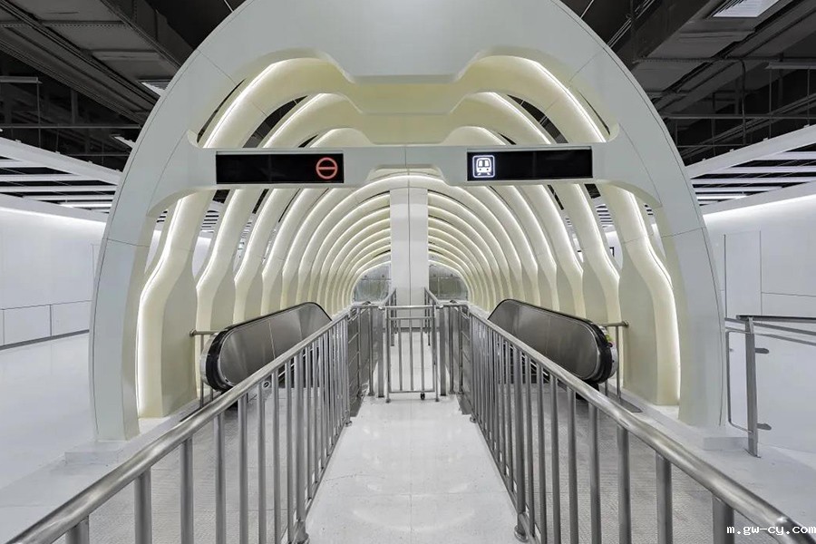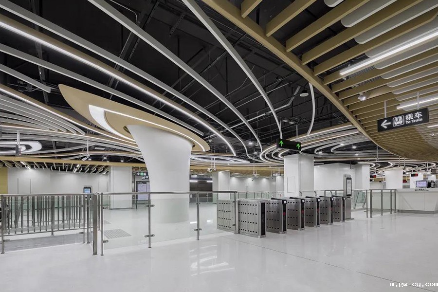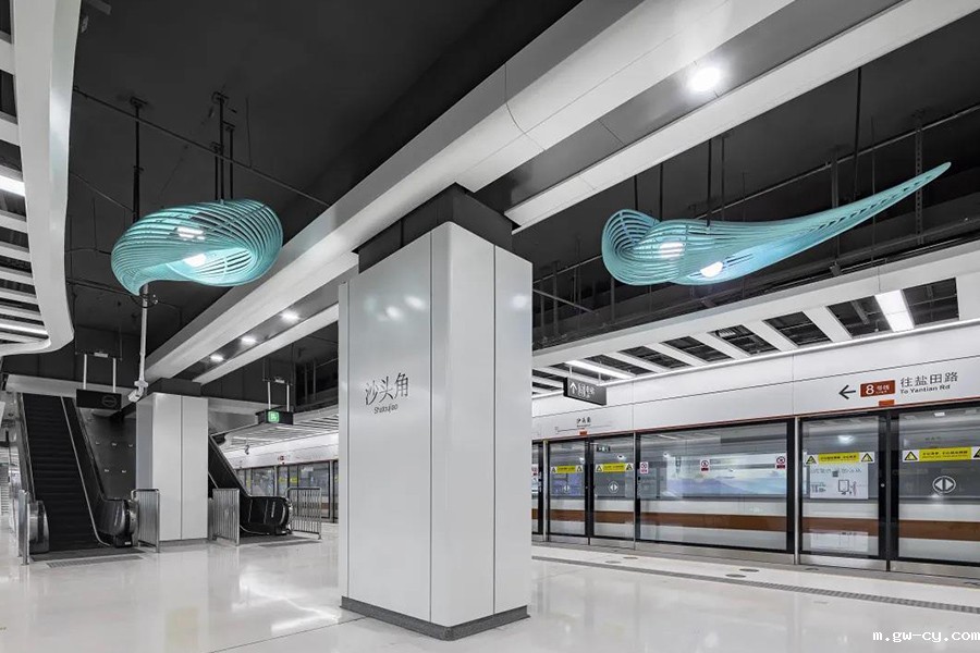 扶梯洞口处通过抽象鱼骨架造型进行装饰,
