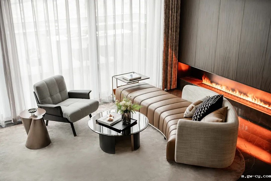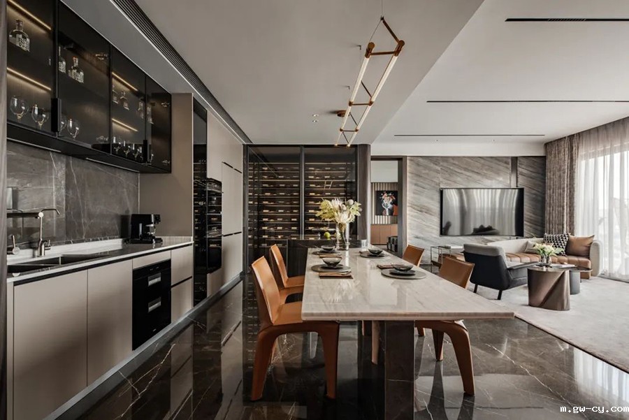 项目位于广州中轴与江轴交汇处。J&A在设计中,充分注重人文自然景观与室内环境的融合,以 “雅致都会” 为风格基调,将设计美学、艺术场景传递至空间的每一处细节,呈现出一个造型简洁、质感精致且富有艺术氛围的居住空间,展现一种自然舒适、轻奢雅致的现代居住方式。