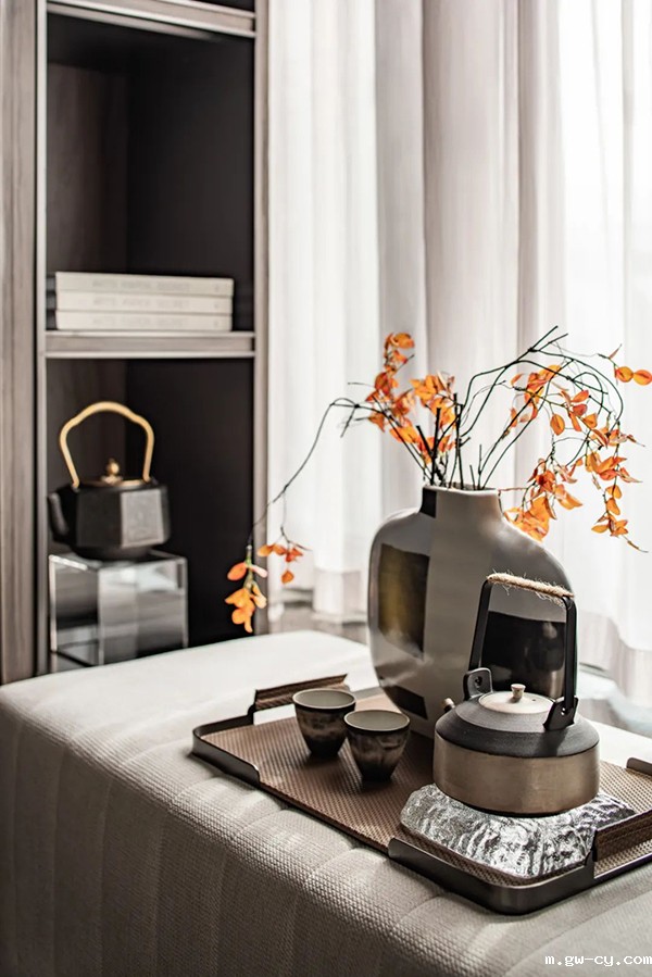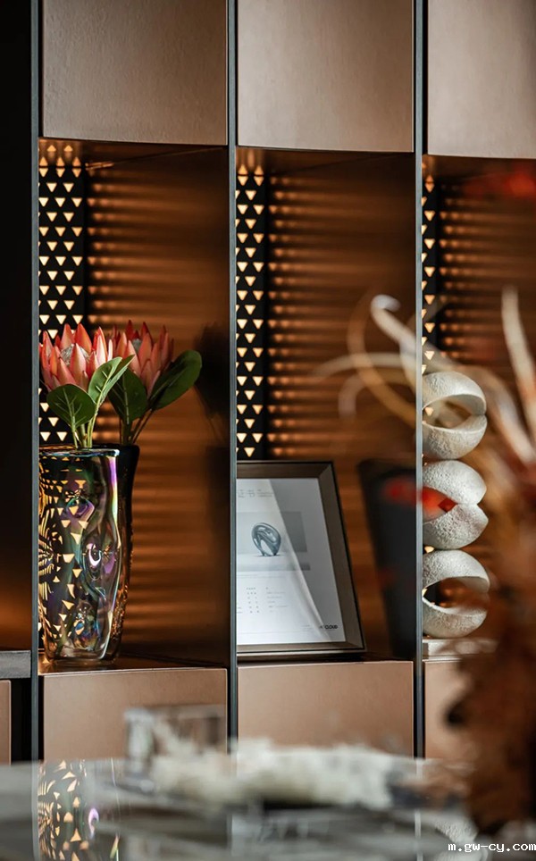 简约现代的灯饰、别致的插花……空间中的每个单品,无论是色彩还是质感,都蕴含精致而时尚的美学内涵,为居住之人营造了多样的空间体验和充满艺术气息的生活旅程。