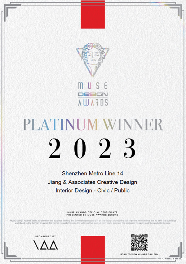 杰恩荣誉 | 深圳地铁14号线荣获2023美国MUSE Design Awards最高荣誉铂金奖