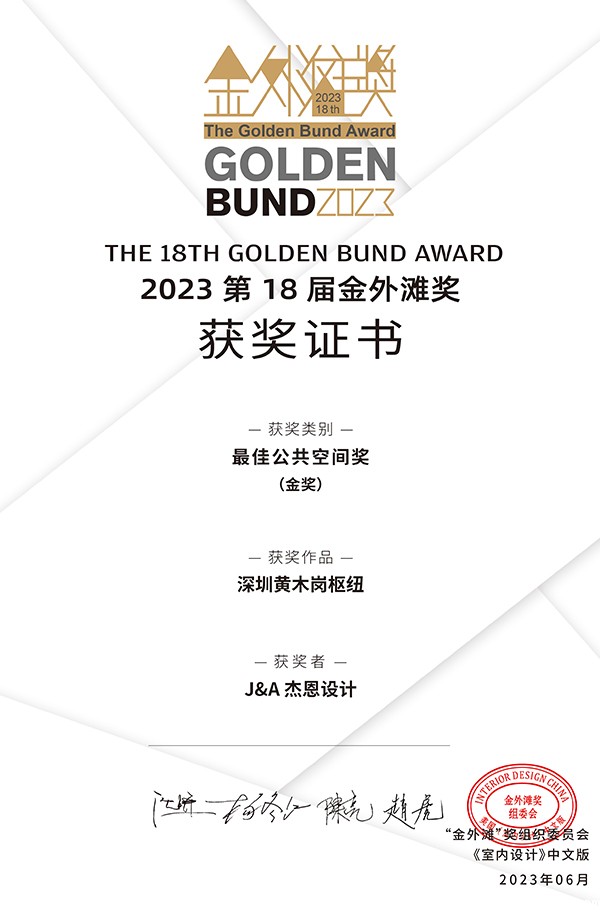 近日,2023年第18届“金外滩”奖正式揭晓,J&Abetway开户网站作品揽获3项大奖。其中,深圳黄木岗枢纽荣获最佳公共空间奖金奖,抚州保利拾光荟荣获最佳商业空间奖银奖,柔宇科技总部园区荣获最佳办公空间奖银奖。