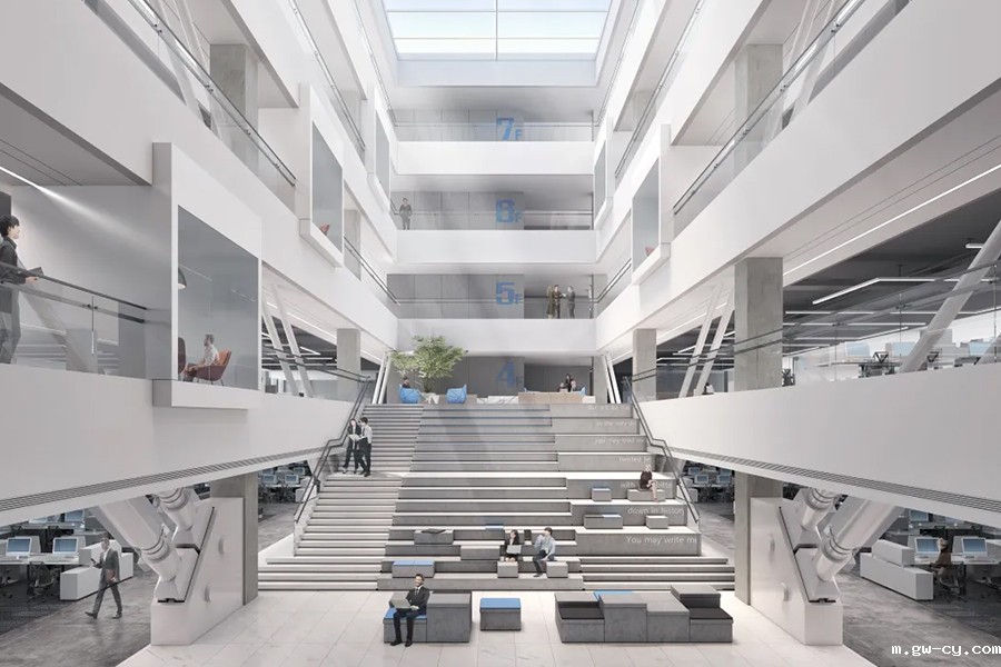 基于对美的集团文化的深入研究和挖掘,结合整体建筑设计“森林之上的科技公园”的愿景。J&A在室内设计中,将企业基因、文化与IP结合,用自然生态的手法体现人与自然的连接,力图打造一个永续、高效、创新、共情的全天候体验型研发办公综合体,创造一个能吸引人和留住人的办公环境空间。