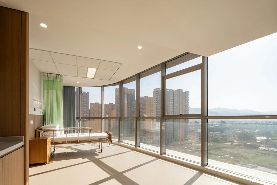 住院区域不仅需要能提供一个功能性强、效率高的医疗服务环境,还要通过自然元素的融入,为病人和医护人员创造出一个舒适、疗愈的空间,病人的身心恢复以及医护人员的身心健康。