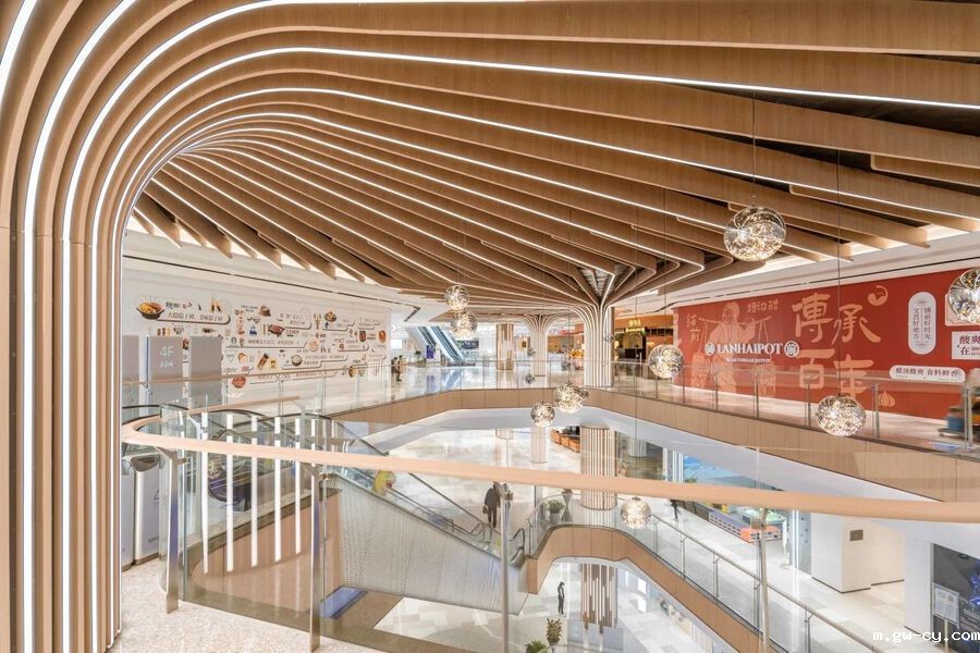 JATO通过研究城市商业的交互需求及消费群体观念迭代,从项目所在地“红树林湿地”中汲取灵感,引入“生活栖息地”设计理念,通过自然生长的线条设计,传达红树扎根于深圳的蓬勃生命力,呈现一个慢生活、快消费、城市新贵的湾区生活场。