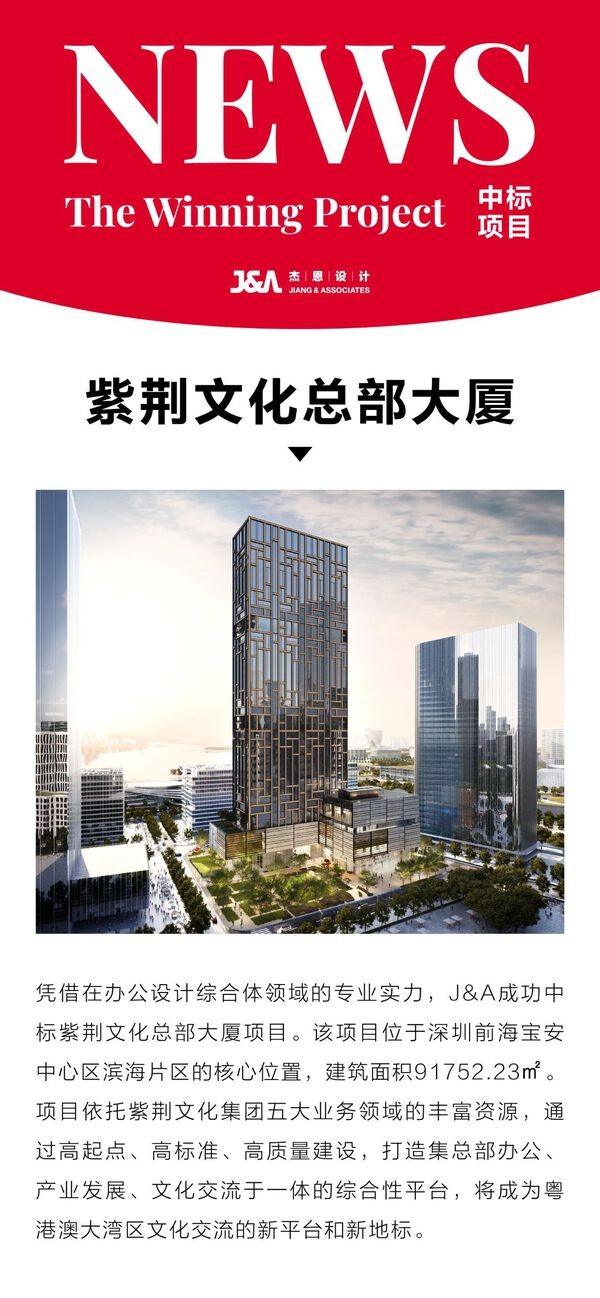 紫荆文化集团有限公司是一家综合性大型骨干文化央企,是目前仅有的两家副部级文化央企之一。项目依托紫荆文化集团五大业务领域的丰富资源,通过高起点、高标准、高质量建设,打造集总部办公、产业发展、文化交流于一体的综合性平台,将成为粤港澳大湾区文化交流的新平台和新地标。