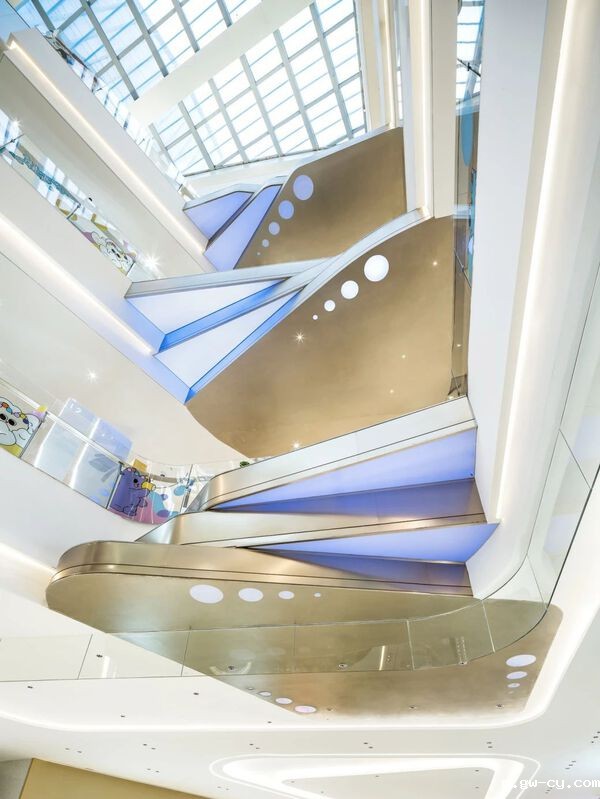 对于商业空间来说,反复的视觉符号植入可以帮助商场构建鲜明的商业辨识度。J&A在常被忽略的地下光厅、电梯厅等区域同样也嵌入海浪线条,从而形成连贯统一的视觉感受。
