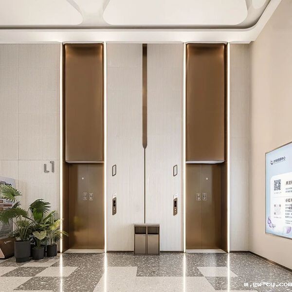 电梯厅区域的高耸门头不仅凸显了其独特性,还与整体氛围和谐融合。