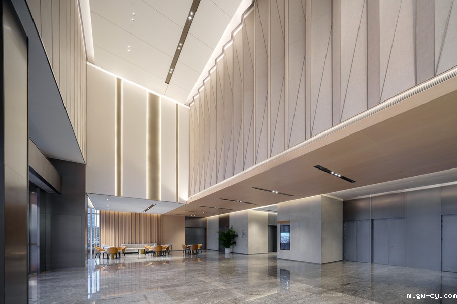 万汇中心延续整体调性,在办公大堂营造高效、专业且不失质感的商务氛围,满足企业形象与员工体验的双重需求。